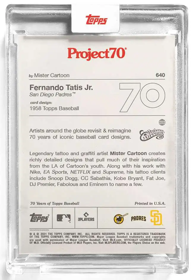 ![Cheapest ๐ MLB Topps Project70 โพ Baseball Feranando Tatis Jr. Trading Card [#640, Mister Cartoon] ๐ 2 Cheapest ๐ MLB Topps Project70 โพ Baseball Feranando Tatis Jr. Trading Card [#640, Mister Cartoon] ๐ - Image 2](https://www.popcenturygear.com/wp-content/uploads/2022/12/toppsp70tatis640cart-inset1.webp)