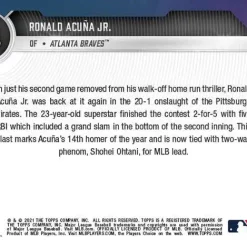 Discount ⌛ MLB Topps Now 2021 Ronald Acuna Jr Exclusive Trading Card #244 [38/49] 🥰