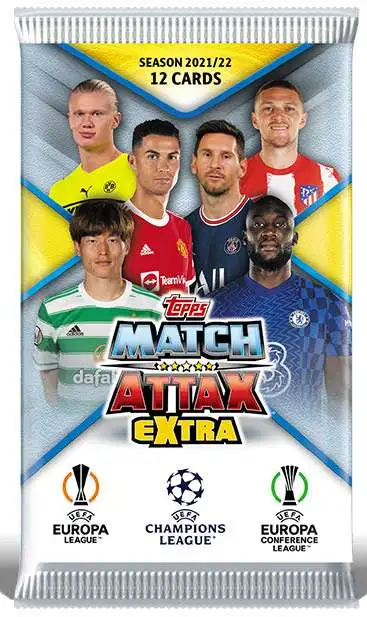 Match Attax Extra is back for 2022! The collection features 299 cards with all the latest squad updates, 100 Club, Crystal Parallels, Neon Foil Mega Value and Out of this World cards, Stars of 2021, Topps Heritage MOTM and an unbeatable 101 card! Look out for Gold and Scan X Limited Edition cards, New 100 Club Legend cards, die cut Chrome X card plus refractor parallels. Lucky packets also contain Autograph cards and Jersery Relic cards can be found inside lucky Mega Tins.